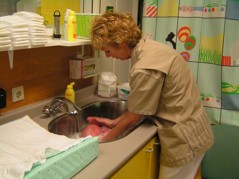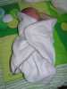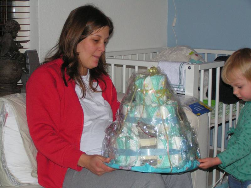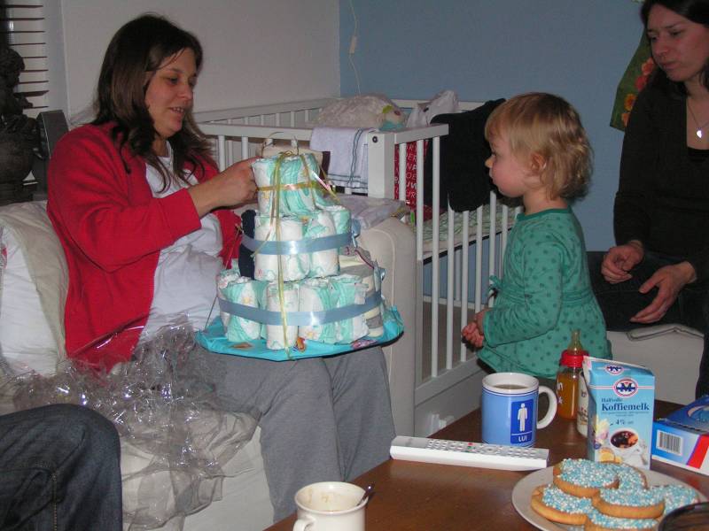 Vandaag de derde en laatste dag kraamzorg. Dus vanaf nu moeten we het "zelf" doen. Vanmorgen dus weer om 8 uur op omdat de kraamhulp alweer voor de deur stond... Eerst even een bakkie thee en dan gaat Brenda voor het eerst Jesse badderen. Dit gaat (natuurlijk) hardstikke goed, en al snel is onze kleine vent lekker gebadderd in de olie, waardoor zijn huidje lekker glibberig is. Hupsakee aankleden en aan de "tiet" bij mams, even z'n ontbijtje naar binnen werken. Dit doet hij natuurlijk weer op zijn manier: erg gulzig... Daarna heeft Jesse voor het eerst in zijn grote bed geslapen, op de babykamer zelf. 's Nachts slaapt Jesse nog lekker bij ons op de kamer. Na zijn laatse voeding rond 11 uur 's avonds slaapt hij door tot 4 uur in de ochtend. Niks te klagen dus ! Ook kwam Oma Trees nog even langs en heeft Jesse de fles gegeven. Verder heeft hij lekker geslapen en heeft hij na dit dutje ook nog Oudtante Diny kunnen bekijken.'s Avonds kwamen Oma Trees en Opa Frans nog even bij Jesse op bezoek, want opa wou Jesse nou wel eens vasthouden. Nou Opa heeft gelijk de fles in zijn handen gedrukt gekregen en kon gelijk zijn kleinzoon van het avondeten voorzien. Op het menu stond weer moedermelk, maar dat is toch wel Jesse's favoriete gerecht. Ook kwamen Tante Lau Ome Hans en Rosa nog langs. Rosa vond Jesse erg lief. Tante Lau heeft heel veel kado's meegenomen ook van Ome Hans z'n vader en moeder en die van Tante Lau. Tante Lau heeft een mooie verweeksdagtaart gemaakt, Jesse is vandaag om 20:33 tenslotte alweer een week jong !! En dit was geen gewone taart, maar een luiertaart met allemaal luiers, maar ook veel kadootjes erin !! Maar Jesse was zo moe van deze drukke dag, dat hij niet veel later weer lekker in zijn bedje lag te ronken. Niet veel later volgden papa en mama zijn voorbeeld... Welterusten allemaal....... Morgen weer een nieuw avontuur van... Jesse Jan!