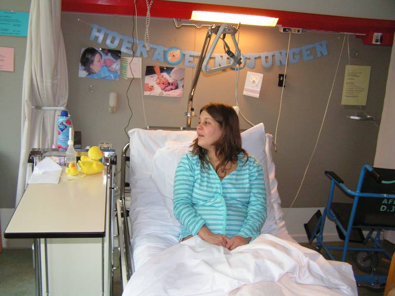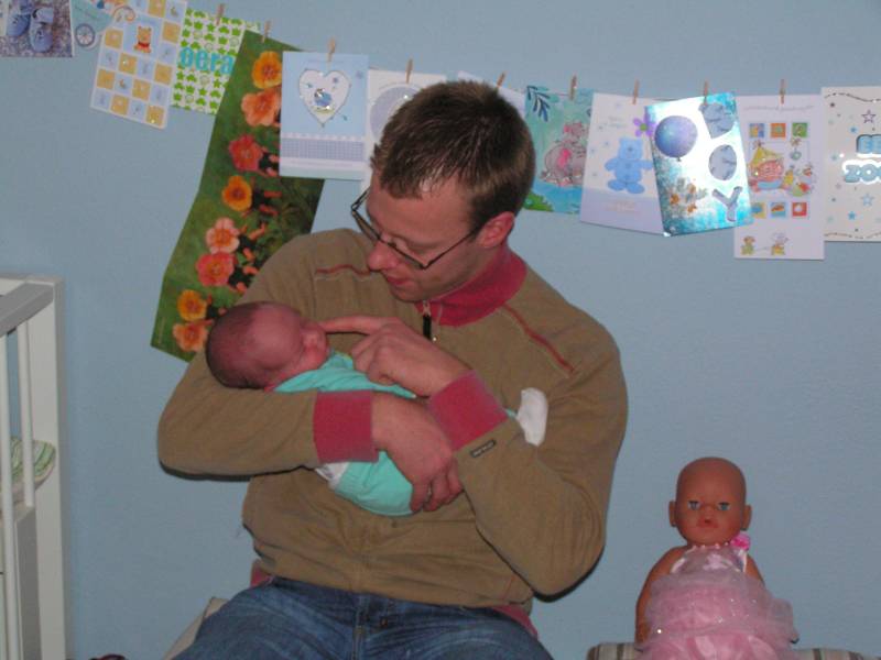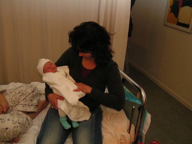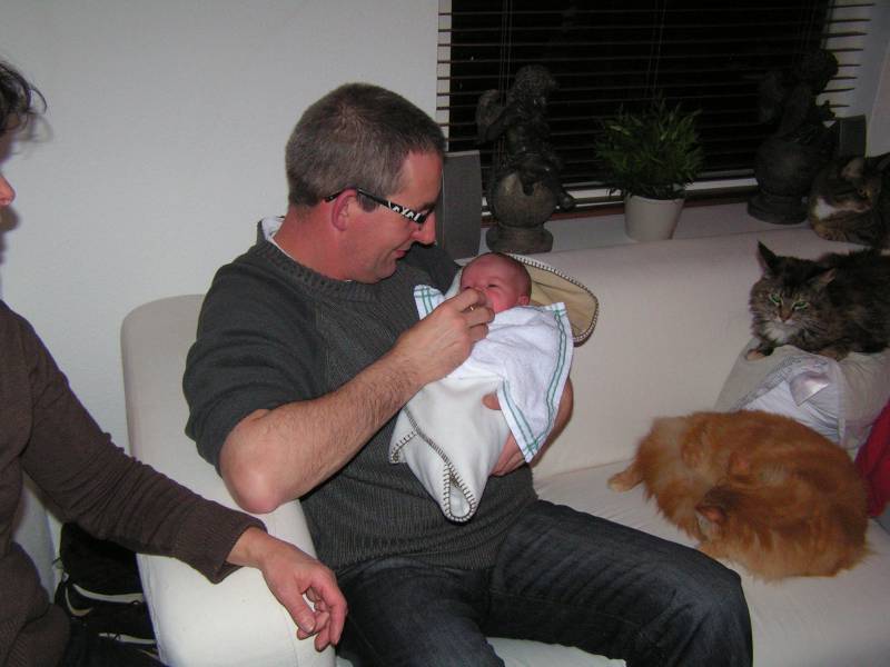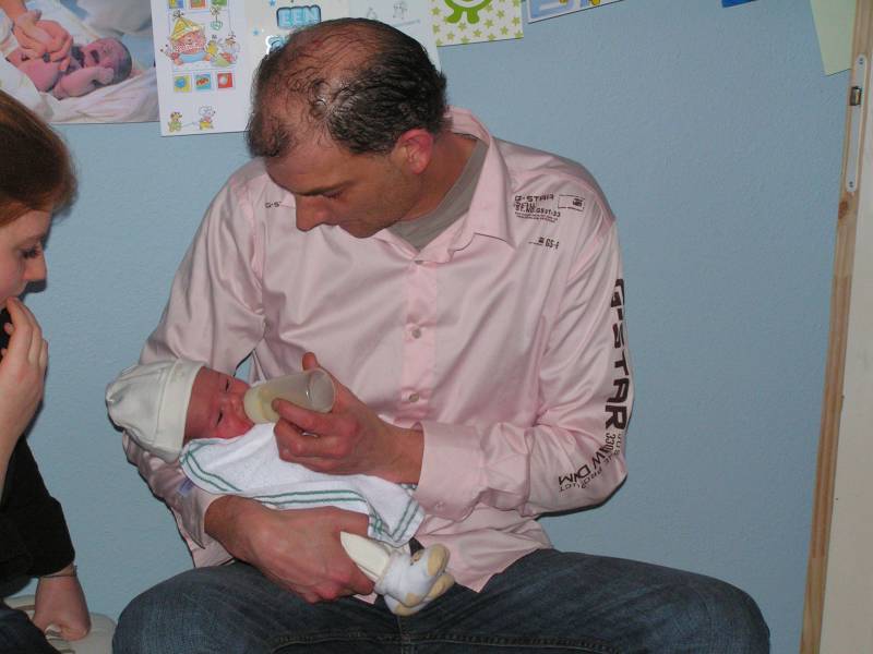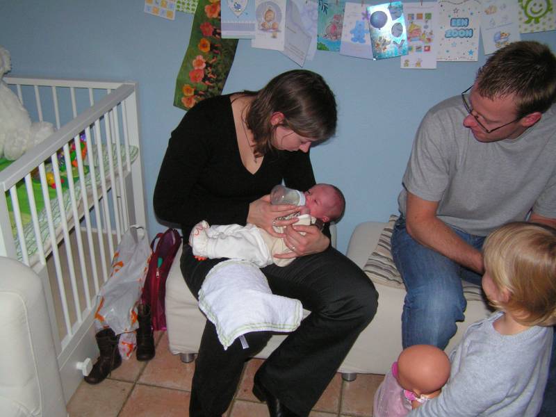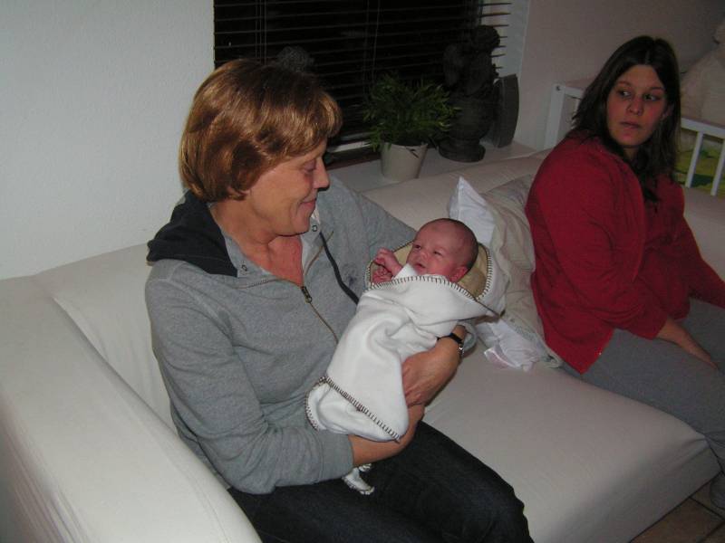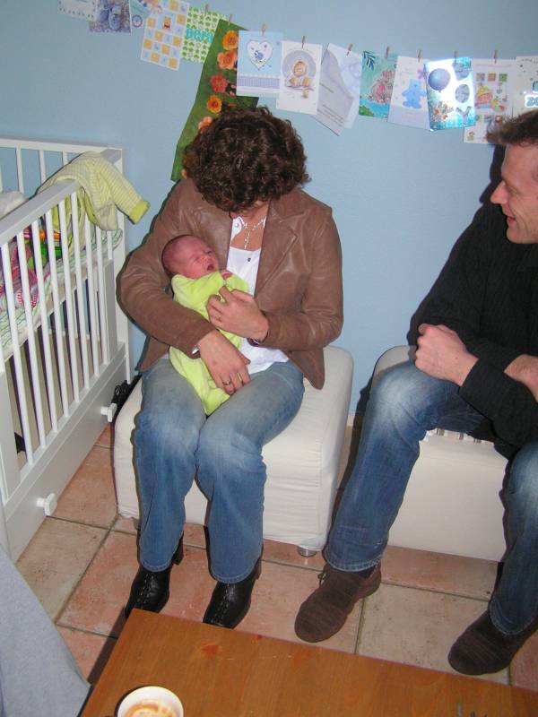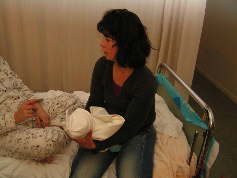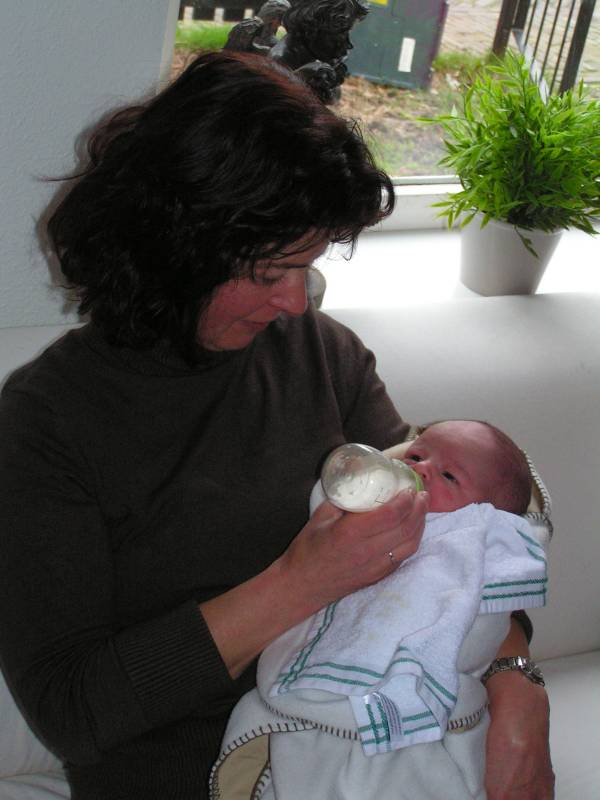 Vandaag weer een tweetal doorbraken. Teneerste ging de anti biotica eraf, dus alle slangen zijn nu weg gelukkig. De bloedtests e.d die waren gedaan waren allemaal negatief, en betekend dus dat er helemaal niks met Jesse aan de hand is, geen infecties dus. De anti-biotica was uit voorzorg, maar bleek dus niet nodig. En ten tweede is meneer voor het eerst aan de fles geweest en dronk die een aantal keer in een keer leeg. Super dus !! Als hij nu nog even komende nacht goed gaat met de voeding, zou hij bij Brenda op de kamer mogen liggen. Dat zou natuurlijk helemaal geweldig zijn. De borstvoeding is aardig op gang gekomen en is nu zoveel dat Jesse er genoeg aan heeft, en dus geen of nauwelijks hypoallergeen bijvoeding nodig heeft. Met Brenda gaat het ook steeds beter. Morgen de hechtingen eruit. Lopen gaat ook wel aardig, dus nu maar hopen dat ze binnenkort naar huis komen. Maar dat zal wel pas maandag zijn denk ik. Vadaag waren op bezoek: Opa Frans, Oma Trees, Oudtante Anneke, neef Arjan en nichtjes Barbara en Naomi.