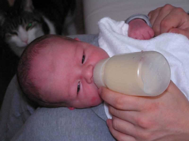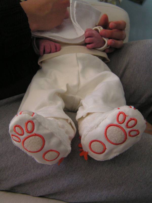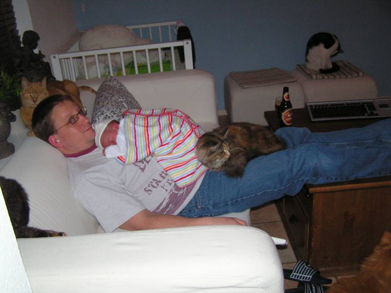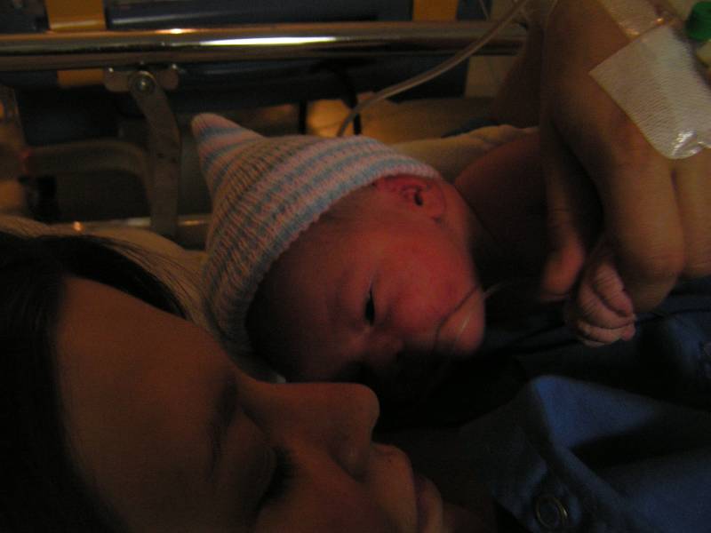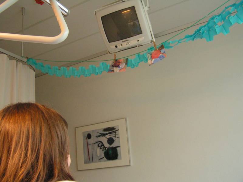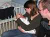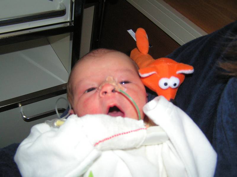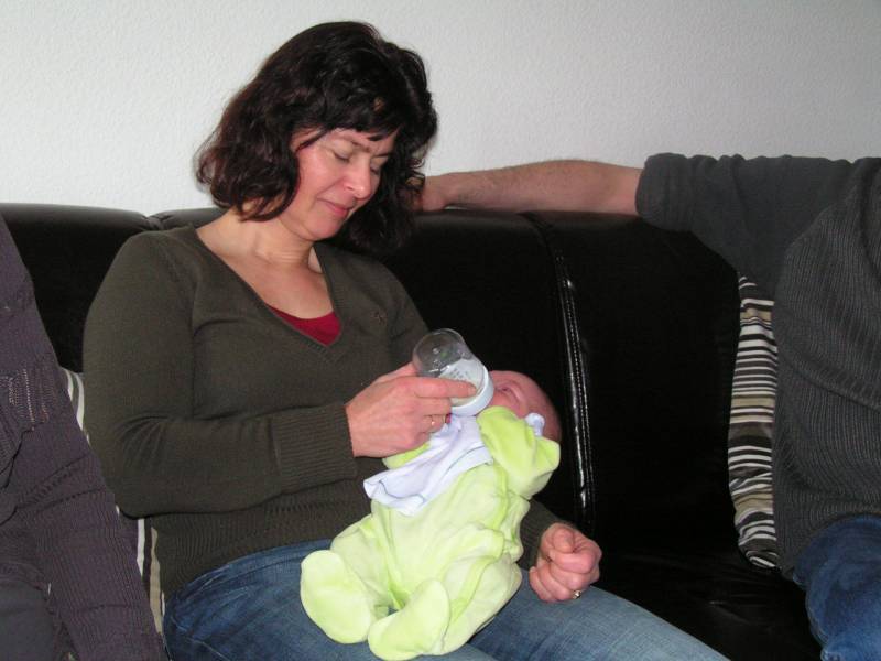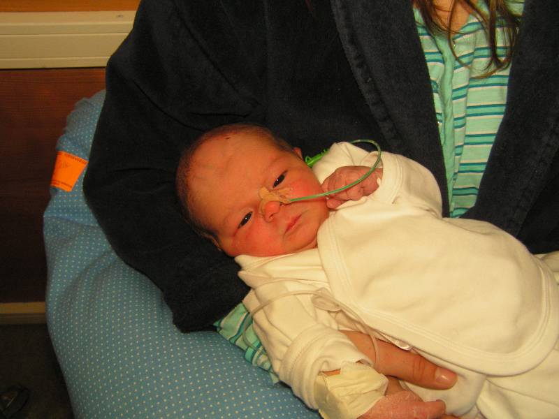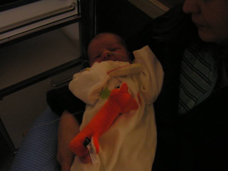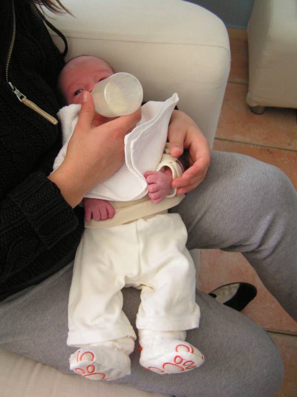 Vandaag weer een tweetal doorbraken. Teneerste ging de anti biotica eraf, dus alle slangen zijn nu weg gelukkig. De bloedtests e.d die waren gedaan waren allemaal negatief, en betekend dus dat er helemaal niks met Jesse aan de hand is, geen infecties dus. De anti-biotica was uit voorzorg, maar bleek dus niet nodig. En ten tweede is meneer voor het eerst aan de fles geweest en dronk die een aantal keer in een keer leeg. Super dus !! Als hij nu nog even komende nacht goed gaat met de voeding, zou hij bij Brenda op de kamer mogen liggen. Dat zou natuurlijk helemaal geweldig zijn. De borstvoeding is aardig op gang gekomen en is nu zoveel dat Jesse er genoeg aan heeft, en dus geen of nauwelijks hypoallergeen bijvoeding nodig heeft. Met Brenda gaat het ook steeds beter. Morgen de hechtingen eruit. Lopen gaat ook wel aardig, dus nu maar hopen dat ze binnenkort naar huis komen. Maar dat zal wel pas maandag zijn denk ik. Vadaag waren op bezoek: Opa Frans, Oma Trees, Oudtante Anneke, neef Arjan en nichtjes Barbara en Naomi.