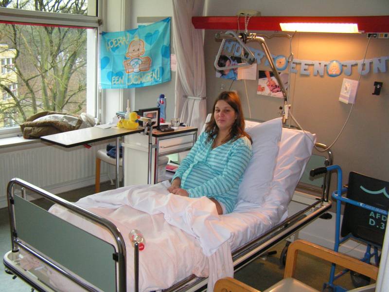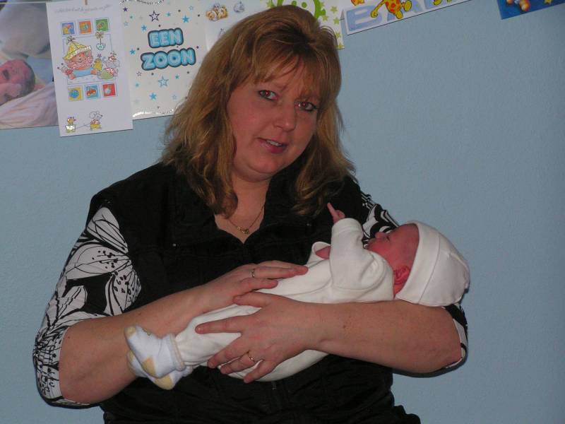 Na twee, vooral voor Brenda, slopende dagen is via een keizersnee onze zoon Jesse Jan geboren. Zijn roepnaam is gewoon Jesse !! Brenda was al een dag bezig, toen in de nacht van zondag op maandag rond half twee de weeen om de drie minuten begonnen te komen. Dus om 4 uur besloten we de verloskundige te bellen. Nadat zij na 15 minuten keurig op de stoep stond, gaf zij het advies om toch in het ziekenhuis te bevallen. Dus om half vijf waren wij al in het ziekenhuis Hilversum. Zeer vriendelijke mensen aldaar en we kregen een supermooie en relaxte kamer met alles erop en eraan. Ook daar gingen de weeen gestaag verder, maar toch was er om 10 uur nog geen centimeter ontsluiting. Dus werd na overleg besloten om de vliezen te breken en met weeopwekkers de bevalling in gang te zetten. Om vier uur 's middags was de ontsluiting nog maar vier centimeter en werd meerdere malen de dosering van de weeopwekkers verhoogd. Brenda raakte uitgeput en rond zeven uur drong ik aan tot een keizersnee. Dit verzoek werd in de wind geslagen en de dosering werd nogmaals verhoogd. Nou ik weet niet hoeveel puf een mens heeft, maar Brenda had er geen meer. Ik kon deze marteling niet aanzien, en drong nu behoorlijk boos aan voor een keizersnee. ook hier had de verloskundige geen oren naar en ik drong aan de gynaecoloog te laten komen. Toen zij arriveerde wilde zij meteen overgaan op een keizersnee. Dus rond de klok van half negen, werd onze zoon Jesse ter wereld gebracht. Helaas moest Brenda onder volledige narcose, en kon zij dus niet geestelijk bij de geboorte zijn. Ikke wel en ik heb nog nooit zo'n wonder meegemaakt. Super en die kleine mocht ik na het wegen e.d. gelijk vasthouden en was gelijk stil en heeeeel nieuwsgierig. Gelukkig had ik een masker op, anders had men de tranen over mijn wangen zien biggelen. Helaas was het vruchtwater niet helemaal zuiver, en nam de kinderarts het zekere voor het onzekere en besloot om Jesse op de couveuseafdeling aan een anti-biotica te zetten om eventuele ontstekingen voor te zijn. Onder het mom "voorkomen is beter dan genezen". Dit betekend dat Jesse enige dagen in het ziekenhuis moet blijven. Nou moet Brenda dit ook ivm de keizersnee, dus heel erg is dat niet. Jesse heeft dezelfde avond nog bezoek gehad van Oma Trees en Opa Frans... Ik wil nu, buiten onderstaande foto's, enkel nog kwijt dat ik SUPERTROTS ben op Brenda en Jesse.... Wordt vervolgd.... PS de domeinnaam www.jessejan.nl is al geclaimd :) EEN TROTSE VADER !!!