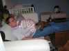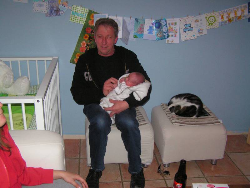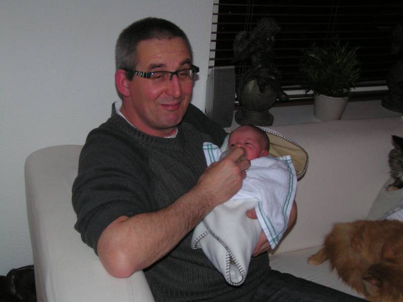 Als ie z'n natje en z'n droogie maar heeft is een welbekend gezegde waarbij ik me, als ik dat hoor, vooral oude mannetjes voor de geest haal. Maar eigenlijk geldt hetzelfde voor baby's en dus onze jesse-man... Z'n melk, een droge luier en wat slaap en hij is tevreden. Vandaag een heerlijk relax dag gehad. Hij is vannacht rond vier uur wakker geworden en daarna rond half acht. Toen heb ik gelijk ons tweede kind Yco uitgelaten en weer terug m'n bed ingekropen tot half elf !! Toen lekker geknuffeld op de bank en een paar portretjes geschoten. Ook heeft Jesse voor het eerst in zijn lekkere luie stoel gelegen/gezeten... Daarna de grote reis naar oma Trees en opa Frans, ook Yco ging mee. Lekker gewandeld met de wandelwagen en bij opa en oma op visite geweest. Natuurlijk moest Papa Razzi weer foto's maken en filmen.... Lekker de fles van oma gekregen... Jesse vond het erg gezellig en het was helemaal een verrassing dat hij ineens in de armen van ome Jonny lag !! Daarna maar weer terug naar huis, waar Jesse door al die indrukken die hij heeft opgedaan 1,5 keer zoveel gegeten had en samen met mama lekker is gaan slapen.... Nu maar eens kijken wat er vanavond gaat gebeuren...... Nu dat kan ik je vertellen.... Vooral veel geslapen en ome Rein en tante Lies zijn ook nog even komen kijken.. Tante Lies heeft Jesse ook even vast gehouden.. dat was wel gezellig... Toen kwamen Opa Bert en OUDoom Fred nog even langs... Een toffe peer die veel vuurwerk gaat afsteken als Jesse 1 jaar word !!!! Ome Fred komt met tante Karin volgende week nog even bij Jesse kijken..