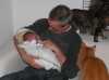 ZE ZIJN THUIS !!! Brenda en Jesse zijn vandaag thuisgekomen ! Dat is natuurlijk het hoogtepunt van deze vermoeiende week. Om half tien zette ik koers naar het ziekenhuis, eenmaal aangekomen begon Brenda met afkolven. Terwijl ze hiermee bezig was kwam de kinderarts mij melden dat ze zeer tevreden is over Jesse en dat ze gelijk naar huis mochten. Dat was natuurlijk niet tegen dovemansoren gezegd (alhoewel een oor wel een beetje) en begon papa maar vast met spulletjes pakken. Even nog de laatste papieren, even Jesse wegen en verschonen. Het autostoeltje gehaald, en nog even gedag gezegd en bedankt voor de goede zorgen op de kinderafdeling. Eenmaal beneden reed ik de luxe BMW voor terwijl Jesse al lekker lag te slapen in zijn autostoeltje. Brenda ingestapt en richting Baarn. Dat was toch super! Alle beesten even kennis laten maken met Jesse. Yco vond het helemaal leuk zo'n baby, en telkens als Jesse een geluidje maakt in de box, staat hij op en gaat even gluren naar dat kleine mensje. Ook kwam vandaag de kraamzorg thuis.Willemieke kwam met wat tips en vervolgens mocht papa Jesse in bad doen. Dat was erg leuk, maar toch ook een eetje eng. Bang dat Jesse losschiet en zo. Maar het ging goed, beetje badolie, haartjes wassen enz. enz. Daarna aangekleed en naar bed. Zo hebben we de rest van de dag een beetje zitten tuttelen. 's Middags waren Jonny en Michel geweest met een kado voor Jesse, een Harley Davidson shirt. Supercool natuurlijk en later Oma Trees en Opa Frans met nog meer kadoos kleding en een armbandje voor Jesse met zijn naam erin. 's Avonds Oma Irene en Opa Bert, die een boek hadden laten maken met als hoofdpersoon: Jesse !!! Ook superleuk !! Ome Rein en Tante Lies zijn ook even geweest en Jesse moest natuurlijk met Ome Rein op de foto ! Nu de rest van de avond lekker bankhangen en af en toe kijken naar het mooiste kind van de wereld !!