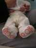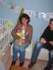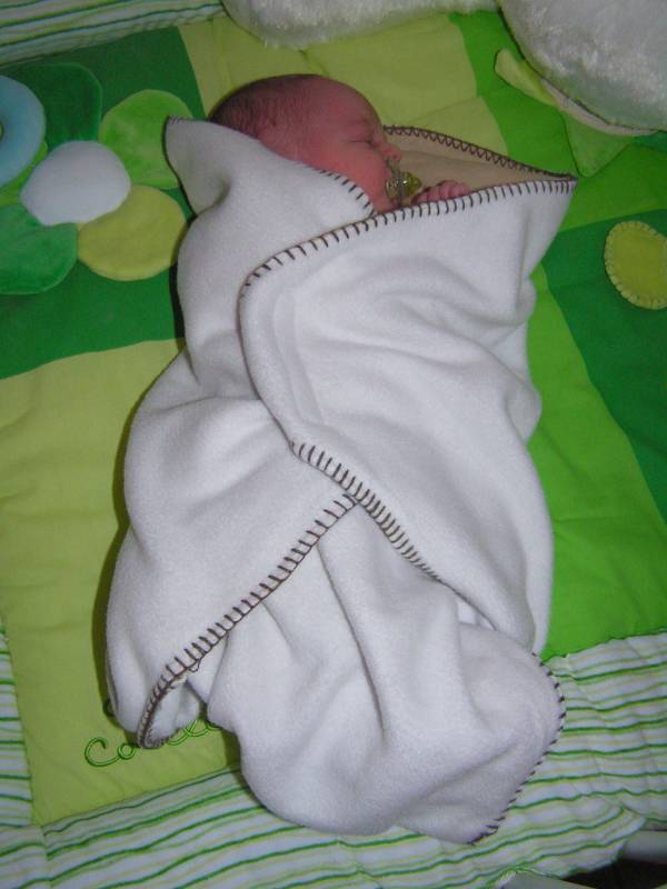 Gelukkig ben ik niet de enige die dat heeft... Ook Brenda overkwam het vandaag. Ze ging Jesse verschonen en even temperaturen. Maar meneertje hield het niet meer, met het gevolg dat de thermometer eruit vloog, gevolgd door een lading poep. Om het nog even af te maken begon het kereltje ook nog even tegen de muur te plassen. Haha, van den Hoek eigen he :) Gelukkig was het plan om hem in bad te doen, en dat was nu wel nodig ook. Toen dit eenmaal allemaal gebeurd was, hebben we Jesse in zijn autostoel geparkeerd, en zijn we naar Utrecht gereden. Eenmaal in de Prenatal konden we eindelijk "jongens" dingen kopen. Dus een hoop kleertjes en een paar mooie "drakensloffen". Even nog naar een andere winkel gereden en daar een mooie deken gekocht voor op zijn bed. Richting huis, eenmaal thuis aangekomen Bren en Jesse naar bed gestuurd, en zelf even het huishouden doen en nog een paar boodschappen. Het kettinkje dat ik voor Brenda besteld had met de naam Jesse was eindelijk binnen en dit was voor mijn lieve vrouw een grote verrassing. Eind van de middag na het middagdutje kwamen ome Hans, tante Lau en Rosa op visite. Die moesten natuurlijk ook even gefotografeerd worden met Jesse... Na dit bezoek, aan het eind van de avond hield Jesse het voor gezien en ging lekker slapen. Ook nu weer volgden papa en mama niet veel later........