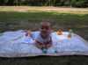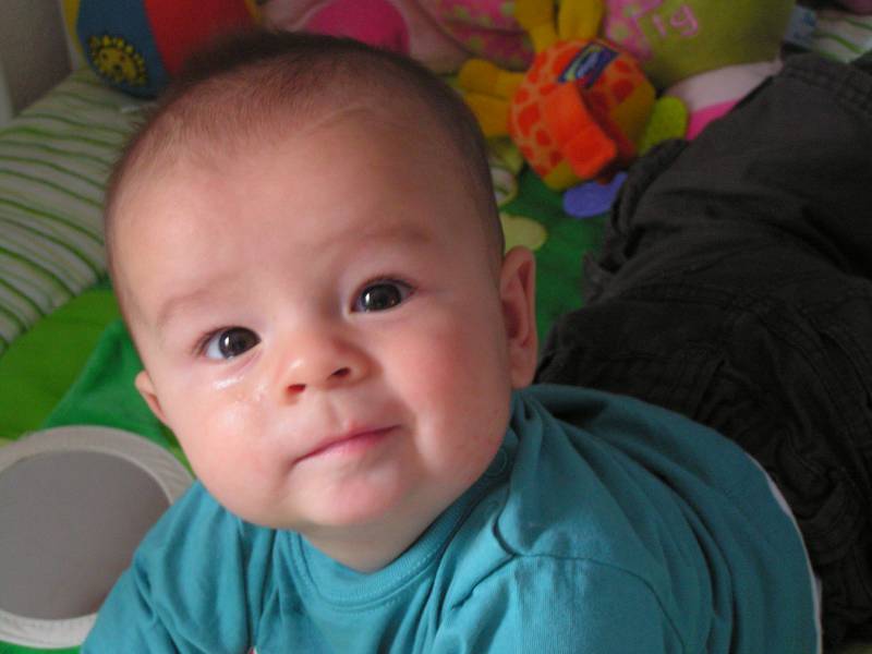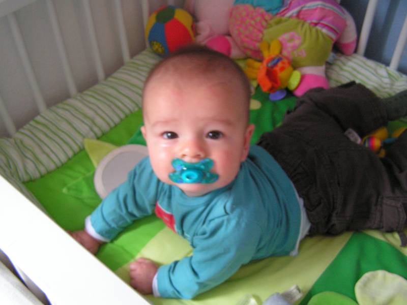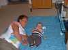 Zoals jullie vorige week hebben gelezen waren opa en oma Kip terug van vakantie en mochten ze na vier weken woensdag gelijk weer op Jesse passen... En dat vonden ze erg haha... Jesse heeft zich de hele dag prima vermaakt. Heerlijk gewandeld en bij de kipjes gezeten.. Ook op het speelkleed heeft Jesse zich heerlijk uit kunnen leven.. Daarna had vaders een lang weekend. Ik was dus vier dagen bij mijn lekkere ventje. Donderdag kwam eerst Rosa de hele dag. Dat was gezellie en zelfs Rosa was het zat aan het eind van de dag.. 's Avonds ging ik naar Doe Maar met ome Rein en Tante Lies. Vrijdag kwamen eerst ome Rein en tante Lies een bakkie en broodje ei doen, en natuurlijk Jesse knuffelen.. 's Avonds bleven ome Hans tante Lau en Rosa eten. Dat was erg gezellig... Top 40 spel gespeeld en door mij gewonnen natuurlijk :) Zaterdag zijn we naar ome Tim en tante Margje geweest. Daar blijven eten en monopoly gespeeld tot kwart voor 12 !!! Dat was wel een latertje voor Jesse maar een erg leuke avond.. Helaas heeft ome Tim gewonnen :( Zeker voor herhaling vatbaar, maar eerst komen ze weer een keer richting Jesse.. Jesse's tandjes komen door en daar heeft hij af en toe wel last van. Gisteren heeft hij voor het eerst een stukje gekropen op de bank. Wel met moeite maar het begin is er... Nu nog heeeeeeeel gek en langzaam, maar straks is hij waarschijnlijk niet bij te houden en gaat ie als een raket door de kamer.....