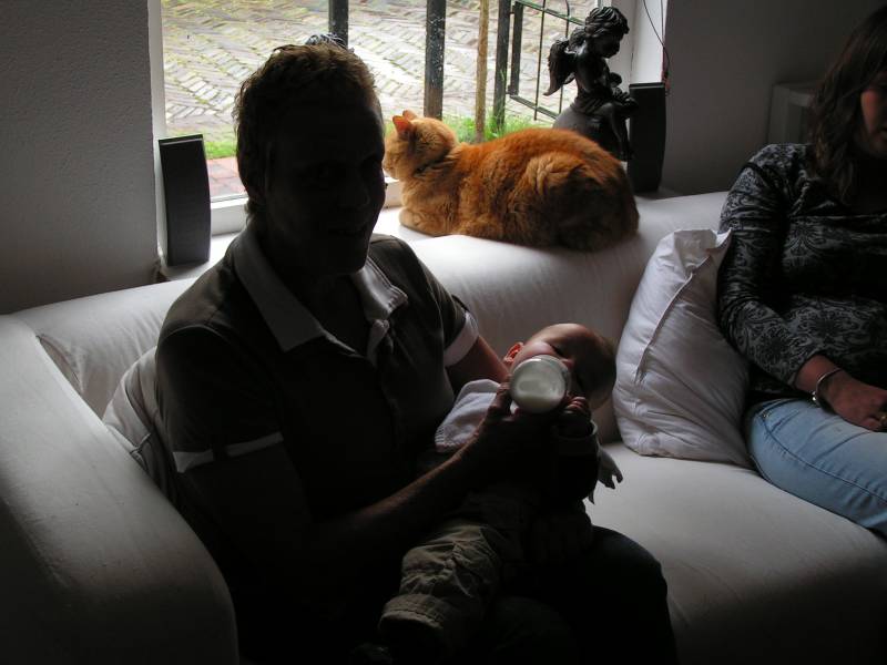 Vandaag is ons kleine mannetje een half jaar geworden... 6 Maanden geleden om 20:33 meldde hij zich keurig met een schreeuw en een poep.. Het lijkt al een tijd geleden, maar aan de andere kant gebeurd er zoveel, dat de tijd voorbij vliegt.. Als je de foto's en film van toen terugkijkt zie je dat hij heel erg veranderd is en gegroeid natuurlijk.Onderaan deze pagina staat een klein overzichtje van het afgelopen jaar.. Van zwangerschapstest naar de eerste echo's en de eerste foto's buiten de baarmoeder.. Jesse eet nog steeds goed, als een bouwvakker probeert hij zo snel mogelijk, zoveel mogelijk in zijn mondje te krijgen.. Het kan hem niet snel genoeg gaan... Alleen bietjes haalt hij zijn neus voor op.. Woensdag hebben opa en oma Kip opgepast, voorlopig voor het laatst want Bren heeft nu vakantie. Vrijdag is Jesse bij opa en oma Vis geweest. Die hadden Jesse al even niet gezien, want die waren net terug van vakantie uit Frankrijk. 's Avonds zijn mama en Jesse blijven eten want ome Sander ging 's avonds zijn pak voor het trouwen passen. 26 September gaat het gebeuren... Worden ome Sander en tante Sil man en vrouw en een paar maanden later vader en moeder... Jesse vind het wel spannend, zo'n neefje of nichtje erbij... Zal Jesse wel laten merken dat hij de oudste en de baas is :) haha... Zaterdag bleven ome Rein en tante Lies eten... Later kwamen ome Hans, tante Lau en Rosa ook op visite. Dat was een gezellige boel.. Ome Rein en tante Lies gingen gisteren een paar daagjes weg naar Duitsland. Dus die komen vrijdag pas terug.. Maar een week later gaan we met z'n zessen naar Texel. Gaat Jesse voor het eerst op een boot en naar de zee.... Gisteren zijn we na een lange tijd weer eens bij ome Ruud, tante Peet, Marscha en Jeffrey geweest. Die zijn een eigen radiozender begonnen, en hadden wat hulp nodig. Dus gelijk maar een bezoekje aan vastgeknoopt... Het duurde even maar alles werkt. Jesse en mama waren ondertussen al naar huis gegaan En dan vandaag. Onze grote vent is, terwijl hij heerlijk lag te slapen, alweer een half jaar geworden. Dat hebben we een beetje gevierd met opa en oma Kip die op bezoek kwamen. Opa en oma Kip hadden zelfs een kadootje voor Jesse, helaas bleef Jesse slapen en heeft hij het nog niet kunnen zien :(... Iets voor half negen knalde de kurk van de champagnefles, en spoot de champagne heerlijk alle kanten op behalve in het glas, hihi.. Een toost op het halve jaartje dat Jesse ervoor zorgt dat deze trotse ouders ook echt reden hebben om trots te zijn... Volgende week lekker op vakantie en zo langzaamaan naar 21-01-2009.... Maar voor het zover is gaat er nog heel wat gebeuren, en zal ook zeker op zijn site te lezen zijn .. p.s. in september geven wij ons weer op, om te kijken of we nogmaals het geluk mogen hebben om een kindje te "krijgen". Want een broertje of zusje voor Jesse zou helemaal fantastisch zijn !!!!!