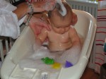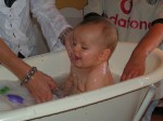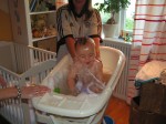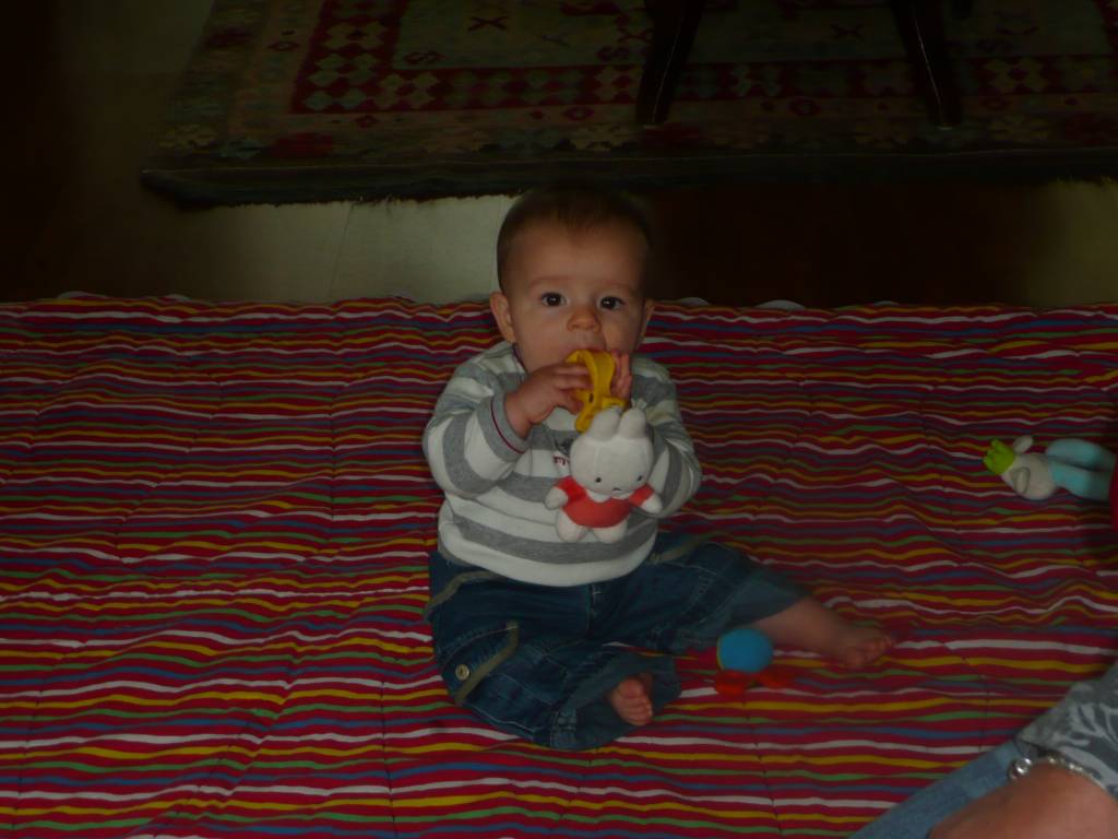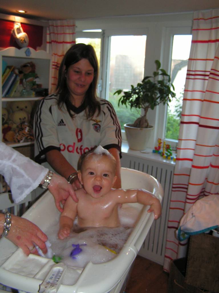 Deze week lekker thuis "gehangen". Woensdag was de beurt aan oma Vis om op Jesse te passen. Dat was natuurlijk heel leuk, ondanks dat Jesse heel veel heeft geslapen. Vrijdag leuk gespeeld bij tante Lau en Rosa. Ennnnnn Jesse's tand is door !!!! Zelfs ik heb hem uiteindelijk gezien :) Hij heeft er soms veel last van, maar daar hebben we gelukkig druppeltjes voor.. En STAAN, dat is het enige wat hij leuk vind. Optrekken aan de box en zijn bed. Hij wordt er steeds handiger in, en kan zelfs al met één hand goed blijven staan of met een speeltje spelen. Je ziet in ieder geval steeds dat ons kleine draakje steeds meer leert en door krijgt.. Gisteren is hij in bad geweest met tante Lies, najah tante Lies deed Jesse in bad :).. Badderen vind het kleine waterratje helemaal super !! Lekker om zich heen slaan in het water en het is de sport om met zijn beentjes zoveel mogelijk water over de rand proberen te krijgen. En dat lukt hem wel, aan het eind van het bad, ligt er nog net zoveel water op de grond als in het badje... Binnenkort maar weer eens zwemmen met hem, dan kan hij zo hard spartelen als hij wil......... Vandaag is Jesse met mama naar oma Vis gegaan. Daar heeft Jesse leuk op de grond gespeeld en hij heeft echt wel door hoe hij moet kruipen !!! Hij ging als een speer !! Gelukkig heeft Omarazzi hier veel foto's van gemaakt.....