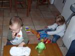 Bovenin is er nu ook een tandje doorgekomen. Dat hebben we pas ontdekt. Dus nu al drie tandjes !! Ook eet hij ook al zelf brood uit het handje.. Allereerst was het de beurt aan opa en oma Vis om op te passen. Opa probeert van Jesse de nieuwe clapton te maken. Wie weet lukt het hem :) Verder natuurlijk weer leuk gelachen en gespeeld. Donderdag kwam Rosa weer gezellig. Die heeft leuk met Jesse gespeeld en 's avonds bleven ome Hans, tante Lau en ... eten. Lekker gesmikkeld. Ome Hans was onder een grasmaaier gekomen, want die was bijna kaal... Opa en oma Kip waren vrijdag weer aan de beurt. Natuurlijk weer heerlijk gewandeld en als grote verrassing kwam tante Anita ook even op visite !! Jesse was in ieder geval aan het eind van de dag weer moe en voldaan en kon zo door zijn bedje in... Zaterdag had vaders het op zijn heupen en ging vroeg boodschappen doen om vervolgens lekkere hapjes voor Jesse te koken. We waren al aardig door de voorraad vers eten heen. Dus lekker bruine bonen met appel en gehakt -- worteltjes met tonijn -- worteltjes met kipfilet en sperciebonen met kipfilet gemaakt. In totaal 15 porties gekookt. Dus hij kan voorlopig weer vooruit. 's Avonds bleven vaders en Jesse thuis en ging mama naar ome Sander en tante Cil. Want tante Cil vierde haar verjaardag. Nog even en dan kan Jesse zijn neefje begroeten, maar dat duurt nog een paar weekjes. Terwijl mama weg was kwamen ome Rein en tante Lies nog even bij ons Jessemannetje kijken. Zondag ging mama al vroeg de keuken in. Daar heeft zij een grote pan heerlijke erwtensoep gemaakt. Die hebben wij 's avonds lekker met ome Rein en tante Lies opgeslurpt. Het was een heerlijk soeppie waar de omgeving de volgende dag ook nog van kon nagenieten. Overdag heeft Jesse weer leuk op de grond gespeeld. Nu hij een stuk steviger op zijn beentjes staat durven we dat wel aan op onze plavuizen vloer. Natuurlijk staan we dichtbij om hem op te vangen mocht het fout gaan. Van de week kregen we een brief van het UMC Utrecht, dat we 16 december op gesprek mogen komen. Dat betekend dat we dan te horen krijgen dat we snel mogen beginnen met de behandeling voor een brusje (broertje of zusje) voor Jesse. Goed nieuws dus, en weer een spannende tijd...... Mama heeft een leuk filmpje gemaakt van Jesse, Yco en Tommy. Klik hieronder op play en het filmpje speelt af ECHT lachen..... Voor de foto's van week 45 klik je HIER...