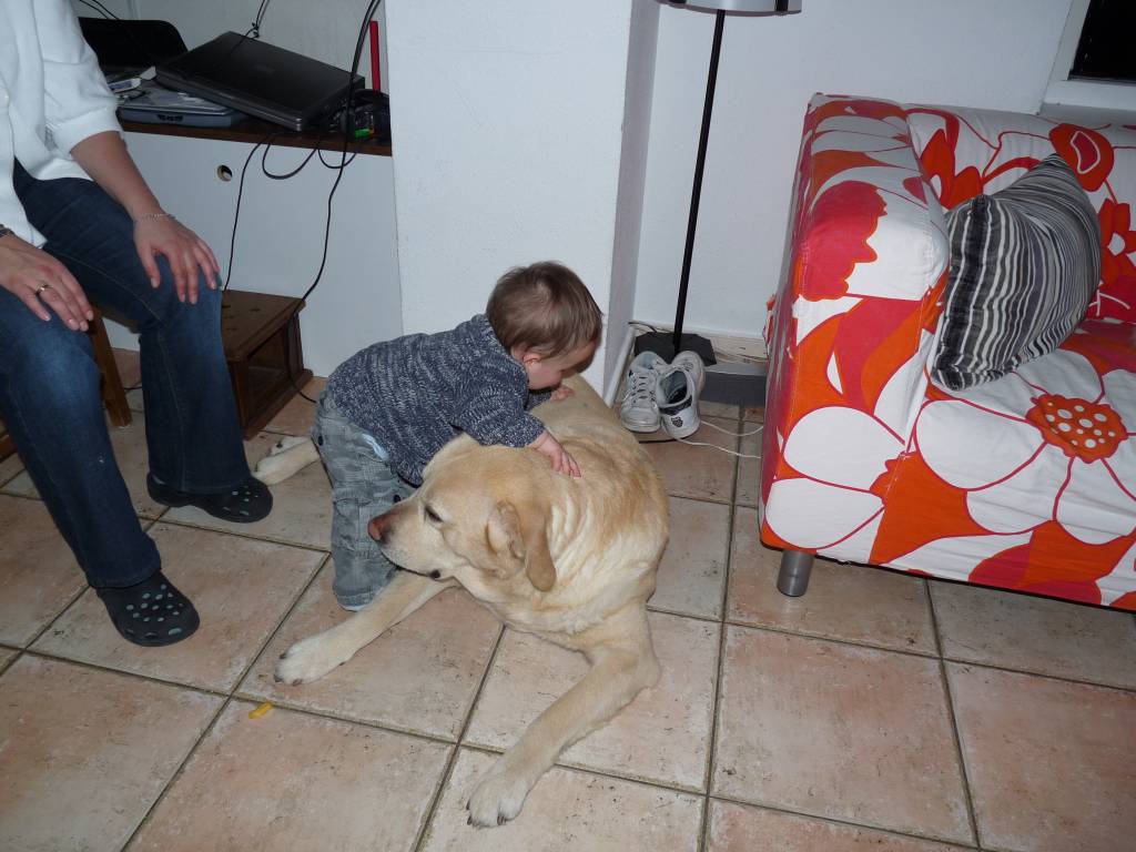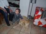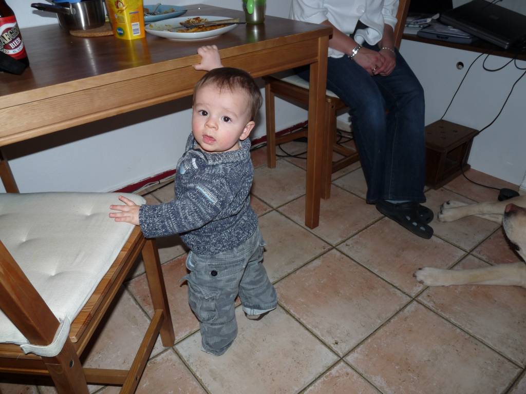 Het mannetje is steeds bijdehanter aan het worden. Begint steeds meer los te lopen, en kan aardig zijn zin doordrijven. Ook klimmen en klauteren horen nu tot de favouriet.. Afgelopen week sliep hij niet al te best. Vaders en moeders waren regelmatig wakker 's nachts. Maar het is een superlief kereltje, en moeten we nog steeds veel met en om hem lachen. Ook is hij de beste maatjes met Yco, onze labrador. De poezen vindt hij ook erg leuk, maar hij loopt er hard gillend op af, dus die maken wel dat ze wegkomen.. Voor de rest was de week weer lekker standaard. Keten bij de opa's en oma's op woensdag en vrijdag. Opa en oma Kip hadden heel veel speelgoed van Jesse's achterneefje Damian gekregen. Dus daar is het nou een groot speelparadijs. Een mooie speeltafel, een hobbelpaard en noem maar op. Jesse verveelde zich al niet, maar nu helemaal niet meer.. Zaterdag kwamen ome Rein en tante Lies gyros eten en ging vaders weer voor de radio draaien vanuit de schuur. Ook heeft papa ome Rein en tante Lies geholpen met de grote verbouwing op de Gaslaan. Jesse kent al in ieder geval goed hieperdepiep hoera en gooit zijn handen in de lucht. Dus hij is goed voorbereid op volgende week... zijn eerste verjaardag !!! Volgende week het laatste wekelijkse bericht en dan gaat op 21 januari Jesse's nieuwe site de lucht in :)...