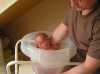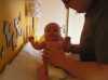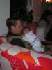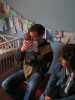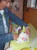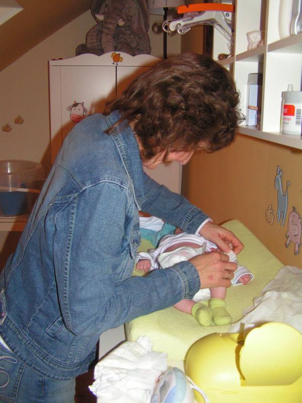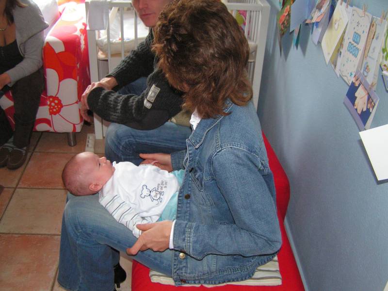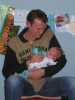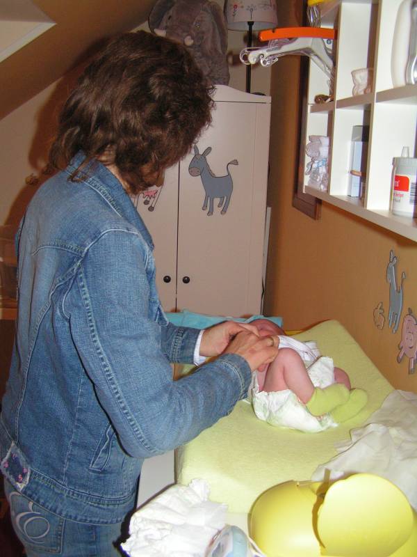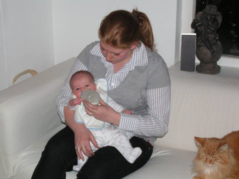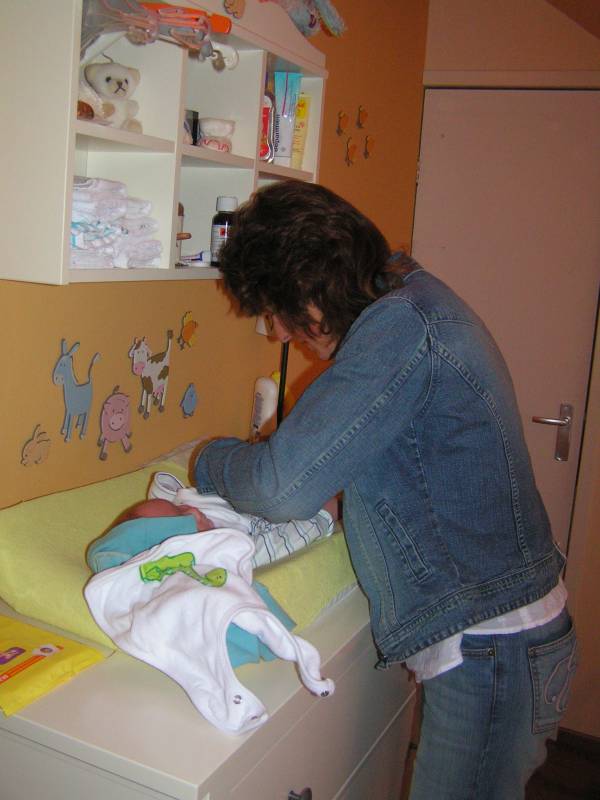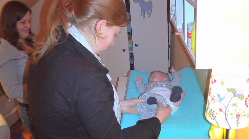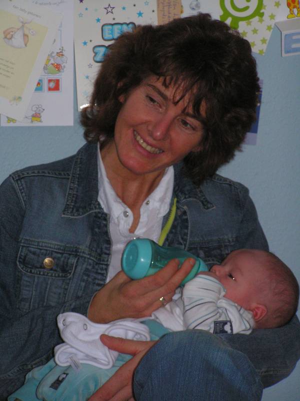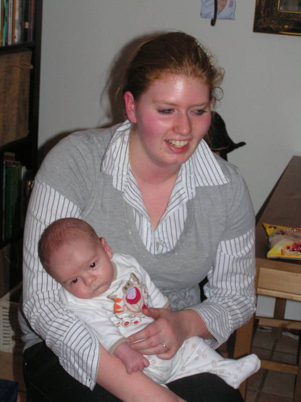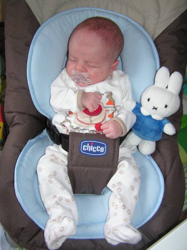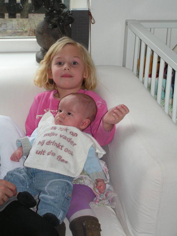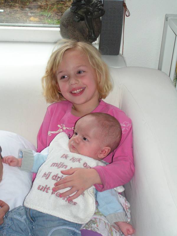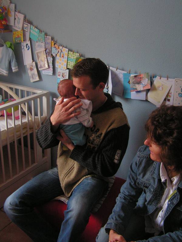 Deze week maar een avond kraamvisite geweest.. Wel gelijk een hok vol; voor het eerst ome Dick en tante Truus, verder opa en oma Kip en ome Rein en tante Lies. Wel erg vol maar wel even gezellig hoor. Paparazzi had een avondje "vrij" dus zijn er toen een keer geen foto's gemaakt. Zaterdagavond gingen mama Bren en MamaLau naar een kledingparty van tante Barbara. 's Avonds zijn natuurlijk tante Lau ome Hans tante Ria en Rosa blijven eten... Daarna zijn de twee moedertjes kleertjes gaan kijken voor Jesse en Rosa, en het bleef natuurlijk niet bij kijken. Leuke kleertjes er weer bij voor de kids... Ook heeft oma Vis de garderobe van onze superboy weer verder uitgebreid. Het gaat erg goed met onze kleine vent, en je ziet hem nu echt groeien. Hij wordt zich ook steeds meer bewust van zijn omgeving en vind de beestjes die boven in de box hangen ook erg leuk. Hij slaat er af en toe tegen en begint dan te lachen.... Zondags zijn oma en opa Vis nog eventjes geweest en hebben lekker een tostie gegeten met onze Jesseman. Daarna ging Jesse even dutten en toen kwamen ome Rein en tante Lies langs. Dat was zo gezellig dat we onze vrienden van de shoarmatent Farao hebben gebeld, en bleven ze lekker smikkelen. Tante Lies heeft daarvoor nog even Jesse verschoond. Een heel avontuur, en helaas had Jesse nu alleen maar een plas gedaan, terwijl als vaders aan de beurt is er meestal een plakkerig bruin drapje in zijn luier te vinden is, het liefst uitgesmeerd over de beentjes en de rug.... Tante Lies had dus geluk haha. Na het eten lagen ome Rein en Jesse te hangen op de bank en vielen ze allebei bijna in slaap :)... Dus werd het tijd voor ome Rein om zijn bed op te zoeken en dat heeft hij dan ook gedaan. Vandaag zijn we met z'n drieen even naar het dorp geweest om wat spulletjes voor Jesse te kopen. Tussen de buien door gauw met de auto naar het dorp om daar de kinderwagen uit te laden en een lekker wandelingetje door het dorp te maken. Zoals gewoonlijk ligt Jesse dan heerlijk te slapen... Nu dromend dat het alweer zes weken geleden is dat hij ineens uit een buik werd gesneden en een paar seconden later voor het eerst in de armen van zijn papa lag......