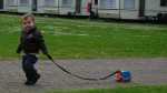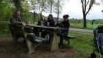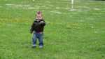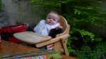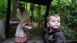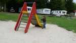 De volgende dag, Hemelvaartsdag, kwamen opa en oma Vis een bakkie doen. Vaders was even boodschappen doen, terwijl opa en oma op de camping aan kwamen. Jesse lag nog te slapen, maar toen hij eenmaal goed wakker was, was hij superblij dat opa en oma er waren.. Wat een verrassing!! Na een bakje koffie met een plak cake trokken we onze jassen aan om een stukje te gaan lopen. Achter ons huisje liep een bospad en dat zijn we ingegaan. We kwamen na een paar honderd meter bij een mooi ven (meertje) aan. Jesse ging met opa naar gekke beesten zoeken en opa vond een klein kikkertje. Hierna wilde Jesse alleen nog maar lopen, dus de buggy reed voor niets mee. Na een tijd kwam er een leuk heuveltje aan. Het leek opa een leuk idee om daar met Jesse vanaf te rennen. Dat vond Jesse ook! Maar na de derde keer werd opa toch wel erg moe, maar Jesse niet.. haha.. Gelukkig vonden we kort daarna een picknicktafel waar we lekker konden rusten. Daarna richting het huisje over de hobbelige weg. Het was een wonder dat Sem in zijn wandelwagen voor het grootste deel bleef slapen.... Eenmaal in het huisje zijn papa, opa en Jesse nog ricting speeltuin gegaan om daarna... jawel patat te gaan halen. dat lekker opgegeten en met opa en oma nog een bakkie koffie gedronken en toen opa en oma uitgezwaaid. Jesse en mama zijn toen met het campingtreintje gegaan, deze reed over de hele camping. Dat was natuurlijk helemaal super!