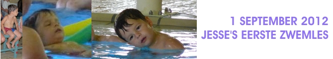 Met vier jaar en drie maanden mogen de kids op zwemles, dus was het de hoogste tijd dat Jesse op 1 September zijn eerste zwemles kreeg. Hij vond het reuzespannend en had het er dagen van te voren al over. Op deze grote dag mochten papa en mama mee en bij het zwembad meegenieten van zijn eerste les. Hij vond het natuurlijk superleuk, het is altijd al een waterratje geweest. Na de introductie snel het water in waar ze allerlei opdrachten kregen. Vooruit en achteruit lopen, springen, van de glijbaan af roetsjen enzovoort. Na een uur zat de les erop en kon hij zich alweer verheugen op de volgende les.... FOTO'S