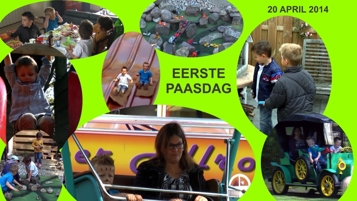Al vroeg waren Jesse en Sem wakker om eieren te zoeken. Het duurde even voordat Milan en mama wakker waren maar eenmaal beneden en aangekleed mocht Milan even zonder zijn broers als eerste eitjes zoeken in de tuin. Hij had er wat gevonden maar smeet ze net zo hard weer weg, hij snapte het nog niet helemaal. Toen zijn twee grote broers die als een raceauto door de tuin gingen en de ene na het andere eitje vonden. Toen er echt niets meer te vinden was heerlijk aan het paasontbijt gegaan. Lekkere broodjes met zalm, eitjes enz. ez. Het weer zag er nog niet best uit maar toch besloten we om naar Oud Valkeveen te gaan, een pretparkje vlakbij. Ook daar was het een opperbeste paasstemming want bij de ingang stond de paashaas al te wachten. Ook werden Jesse en Sem geschminkt. De paashaas kwamen we wel vier keer tegen dus de eitjes waren ook weer binnen :) Natuurlijk in de attracties als de draaimolen, vliegtuigjes, bootjes opblaaskussens noem maar op. Uiteindelijk nog in de achtbaan enineen leuke houten speeltuin waar Milan zich ook super vermaakte. Er werd die dag een nieuwe attractie geopend. Daar stonden we bij te wachten. Jesse durfde niet maar Sem natuurlijk wel, die gaat overal in. Terwijl mama en Sem in de rij stonden dommelde Milan langzaam in en lag te slapen.