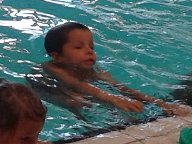 Vorige week zwom Jesse onder hat gat onder water door maar nu ging hij er keurig doorheen.. Daarna kwamen natuurlijk ook de borstcrawl op buik en rug aan bod. Nog watertrappen en een megabom maken om het licht uit te springen... Eerst de meisjes die sprongen het licht gelijk uit... Maar de jongens oei oei oei... dat ging fout en ze moesten het over doen.. Nou toen kwam ereen mega bom en het licht ging supersnel uit en het duurde echt een tijd voor het weer aan ging.. Voor de superpluspunten moesten de papa's, mama's , opa's, oma's enz. zo hard mogelijk applaudiseren.. Buiten de microfoon om had de zwemleraar gezegd dat we bij de "saaie" kant zouden horen. Natuurlijk waren wij de klos en hadden niet hard genoeg geklapt... Maar goed dat de lolzwembroek het vantevoren had gezegd anders hadden we hem mooi het water in geduwd met zijn salaris en al, want dat viel ook al in het water :) Na nogmaals een daverend applaus werd zijn applausmeter rood en waren wij ook geslaagd :)