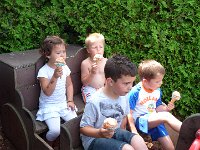 Thuis kreeg Jesse allerlei kadootjes... Geld, elastiekjes (Loom) een mooie bal, Spiderman en noem maar op.. Heel erg verwend... En nu was het tijd om de superlekkere zwemtaart van Jesse aan te snijden.. Die taart was omringd met twixen en in het midden een zwembad waar Jesse aan het zwemmen is met zijn billen boven water :) Superlekker en megaleuk gemaakt door mama... Hij was wel aardig machtig zodat iedereen wel vol zat.. Pfieeh.. Maar ik vond dat ondanks het flauwe grapje van de lolbroelzwemleraar de kids wel een ijsje hadden verdiend.. Dus ome Rich met alle vier de kids (Milan sliep) naar Petershof om een lekker ijsje te halen.. Twee bolletjes ! Dat was smikkelen en smullen..