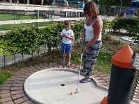 De dag erop nog wel wat last maar kon me weer bewegen.. Eerst met de kids boodschappen gedaan en vervolgens het speeltuintje in. Ik vond dat we ook een keer het plaatsje waar we ons bevonden moesten bezichtigen dus dat hebben we gedaan. Langs de Maas was het mooi maar het plaatsje zelf viel een beetje tegen. Dus wilden we de kasteeltuinen gaan bezichtigen. Bij aankomst bleek dit € 15,00 pp te kosten. Dat vonden we een beetje zonde dus zijn we maar naar het park gegaan en hebben de kids daar een ijsje en wij een biertje genuttigd. De jongens vermaakten zich weer prima in de speeltuin.. Na het eten (ik durf al niet meer te zeggen wat) zijn we gaan midgetgolfen. Maar Milan vond het blijkbaar erg leuk om overal aan te zitten en met stenen te gooien, dat ik met hem naar het huisje ben gegaan....