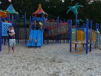 Ook de volgende dag zijn we lekker op het park gebleven, immers genoeg te doen. Zo gingen mama, Jesse en Sem 's morgens naar het strandje. Dat was erg leuk en zeker voor herhaling vatbaar. Na de nodige boodschappen was het wachten op ome Sander, tante Suus, Romano en Nadèche. Die waren ook een paar dagen in Limburg en kwamen gezellig langs bij ons. Natuurlijk eerst keten in de zwembadjes voor het huisje om vervolgens naar het strandje te gaan. Dat was goed vertoeven en ik had nog de nodige drankjes en versnaperingen gehaald. Het was al zo laat geworden dat we snel naar de speeltuin gingen. Tante Suus dook met Milan nog even de ballenbak in. De rest van de kids dook de speeltuin in zodat wij even lekker een biertje konden nemen. Dit was bij de snackbar zodat we daar lekker patatjes gingen eten. Toen was het al heel laat geworden en ging de visite weer richting huis...