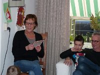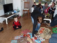 Nadat Romano had uitgepakt mocht hij een kadootje pakken voor iemand anders en zo werden in rap tempo de kado's verslonden. Jesse had mazzel... die had een treinbaan gekregen, maar zwarte Piet wist niet dat die eigenlijk voor zijn verjaardag bedoeld was. Ondanks het andere (Cars) kadopapier en de datum 21-01 erop was dit kado toch op de stapel beland. Vele kado's passeerden. Ook was sloffenpiet goed bezig geweest. Voor diegene die de rare sloffen kregen werd er onder luid geschreeuw van de kids "aantrekken, aantrekken!" geroepen. Opa vis had een echte opa pet gekregen.. Papa een heerlijke snoepketting ;) Na enige pauzes en lekkere hapjes waren we rond half vijf klaar !! Wat waren we allemaal verwend. Opa en oma Kip bleven nog lekker chinees eten en daarna was het tijd om Klaas Vaak op te roepen... Gelukkig hadden we de zondag nog om alles te bekijken en te proberen...