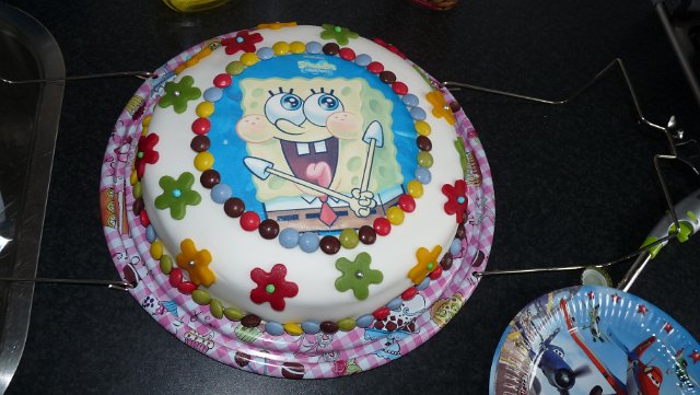 Vier dagen later vierden we zijn feestje thuis. Mama had een mooie Spongebob taart gemaakt, en er kwam veel visite. Jesse kreeg een vishengel, heel veel Lego, waaronder een station en extra rails en nog veel meer. Erg verwend dus weer. Hij liet na een tijdje de visite dan ook achter en begon boven op zijn kamer met het bouwen van het station... Aan het eind van de avond was het natuurlijk weer balonnen knallen :)